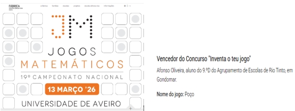 No final do mês de janeiro, o clube de Jogos Matemáticos participou no concurso “Inventa o teu jogo” inserido no 19.º Campeonato Nacional de Jogos Matemáticos, se realizará no dia 13 de março, na Universidade de Aveiro. O objetivo do concurso era ser capaz de imaginar, desenvolver e testar um jogo matemático.